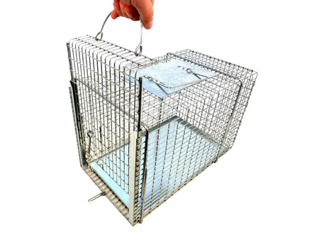 Model 305SS measures 16L x 9W x 10H and is constructed from ½ x 1" - 14 gauge wire mesh. This cage also has a removable sheet metal tray. Animals that fit nicely in this cage include rabbits, skunks, opossums and similar sized animals.