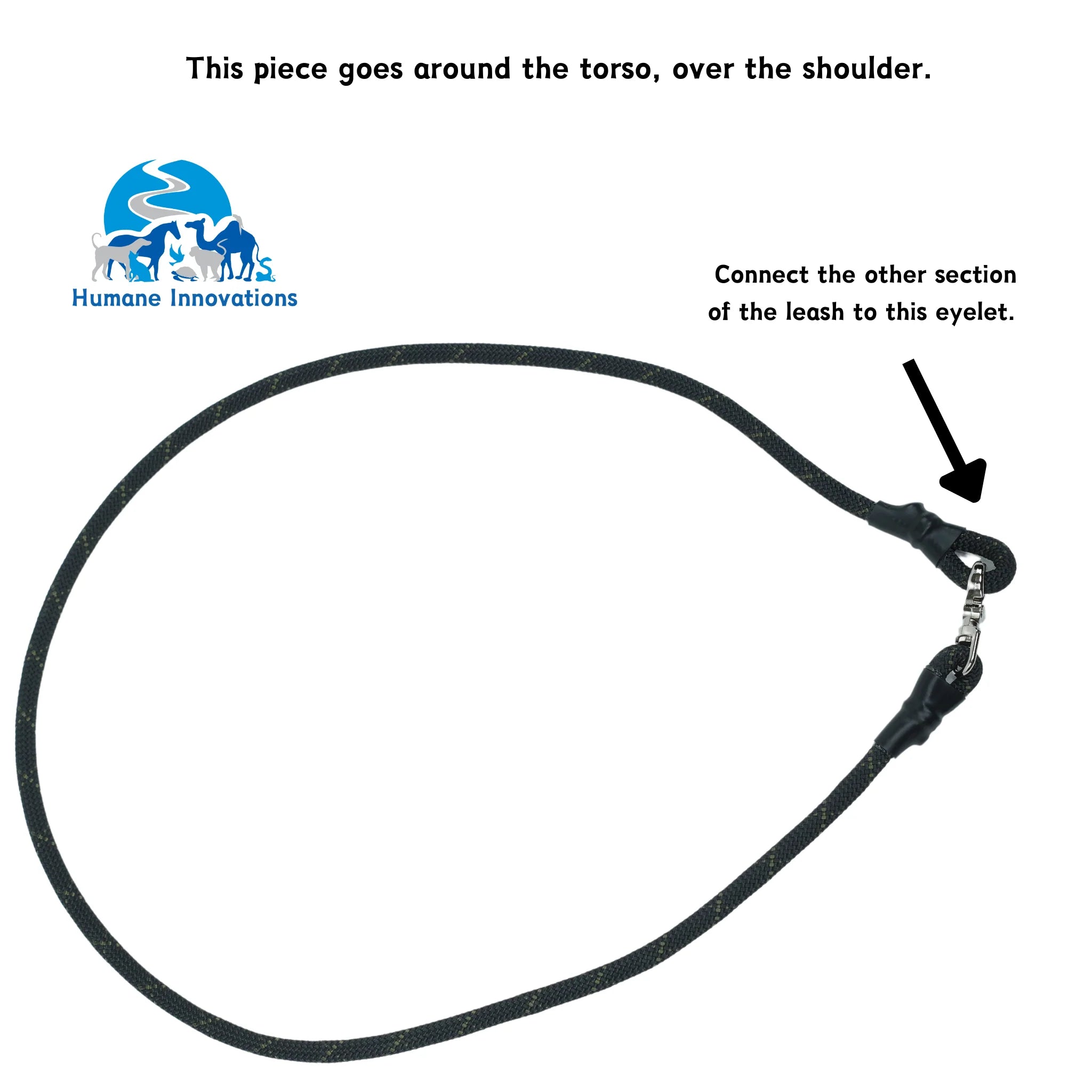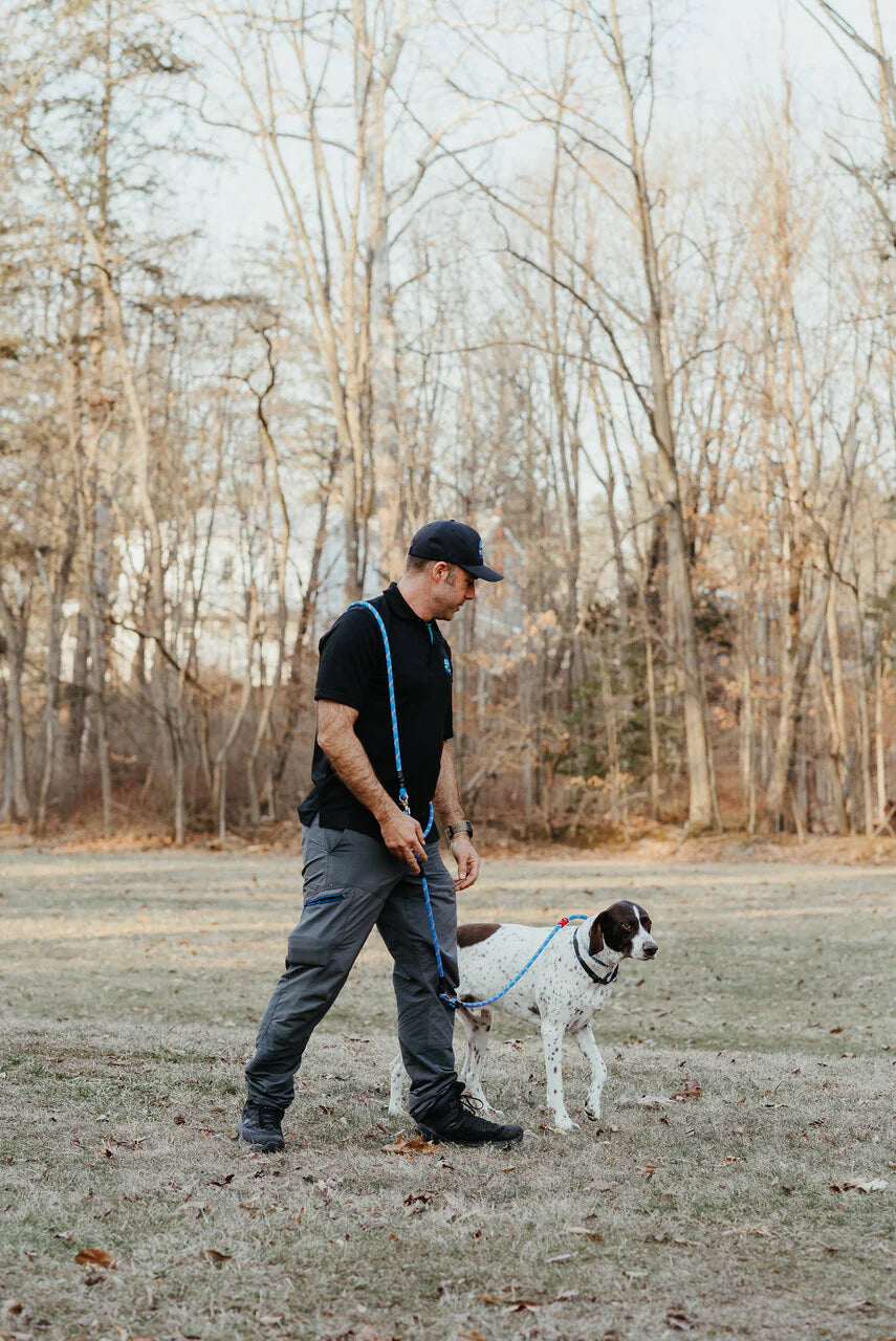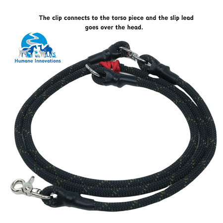 This leash consists of two sections: one wraps around the handler’s torso for hands-free control, while the second section extends approximately 7’ to the dog. It features an optional snap clip or slip lead attachment. Built from rescue-grade rope, this leash is both durable and long-lasting, making it an excellent tool for professionals.
