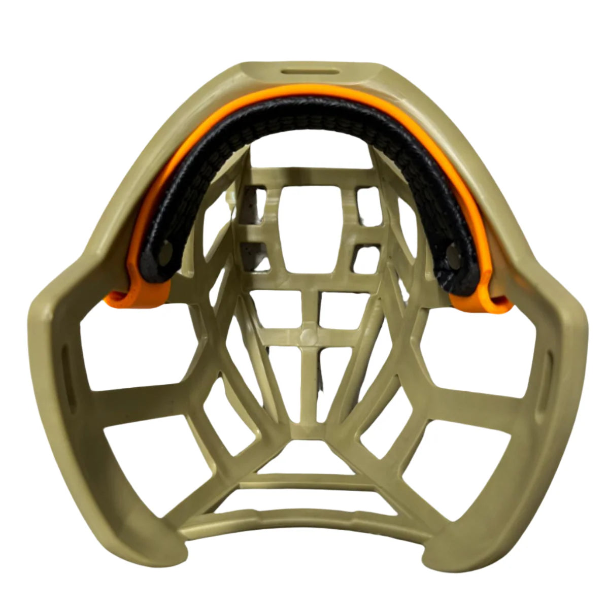 - Carefully cut away riveted noseband (avoid damaging basket attachment points)