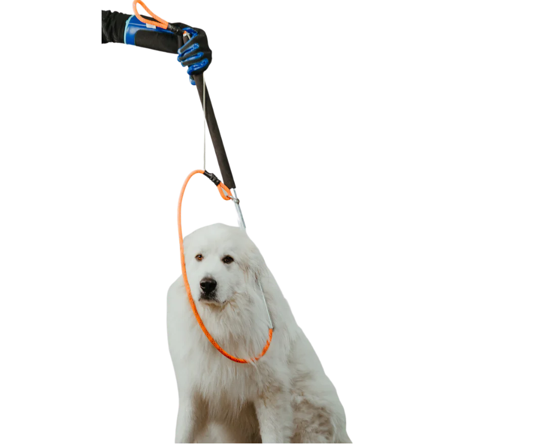 The Freeman Leash Pole from acclaimed product engineer and long-time ACO Peter Freeman is an aluminum pole with an integrated slip-lead. This tool is an excellent bridge between a leash and a control pole and can be effectively used on high-arousal, fearful, and behaviorally suspect/uncertain dogs. This tool can be safely and effectively used both in the field and in the shelter.