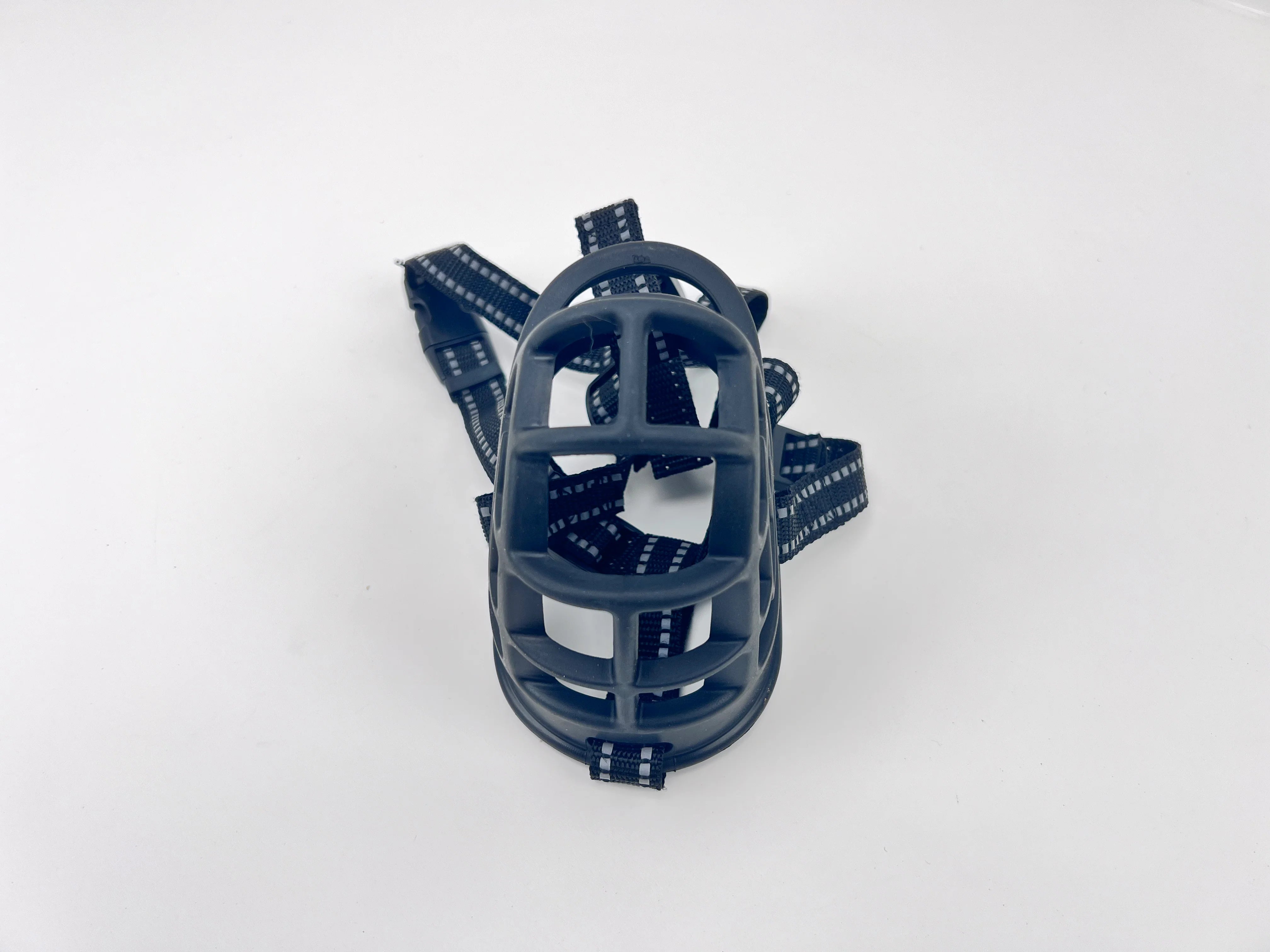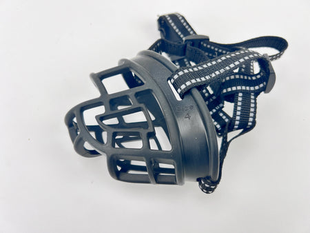 These muzzles are great for regular application. They feature a removable top strap, flexible rubber construction, and a notch in front of the mouth for food rewards and lures.