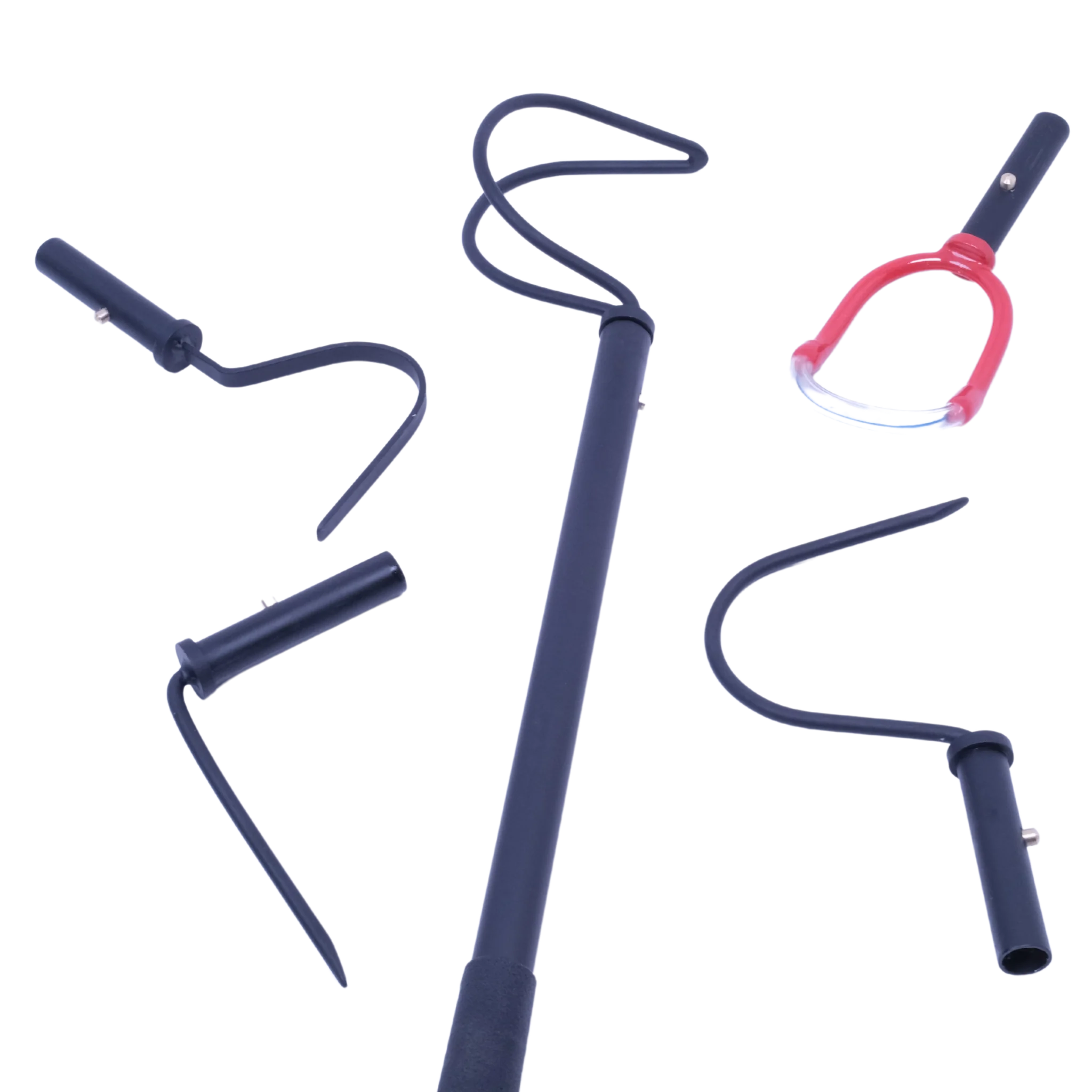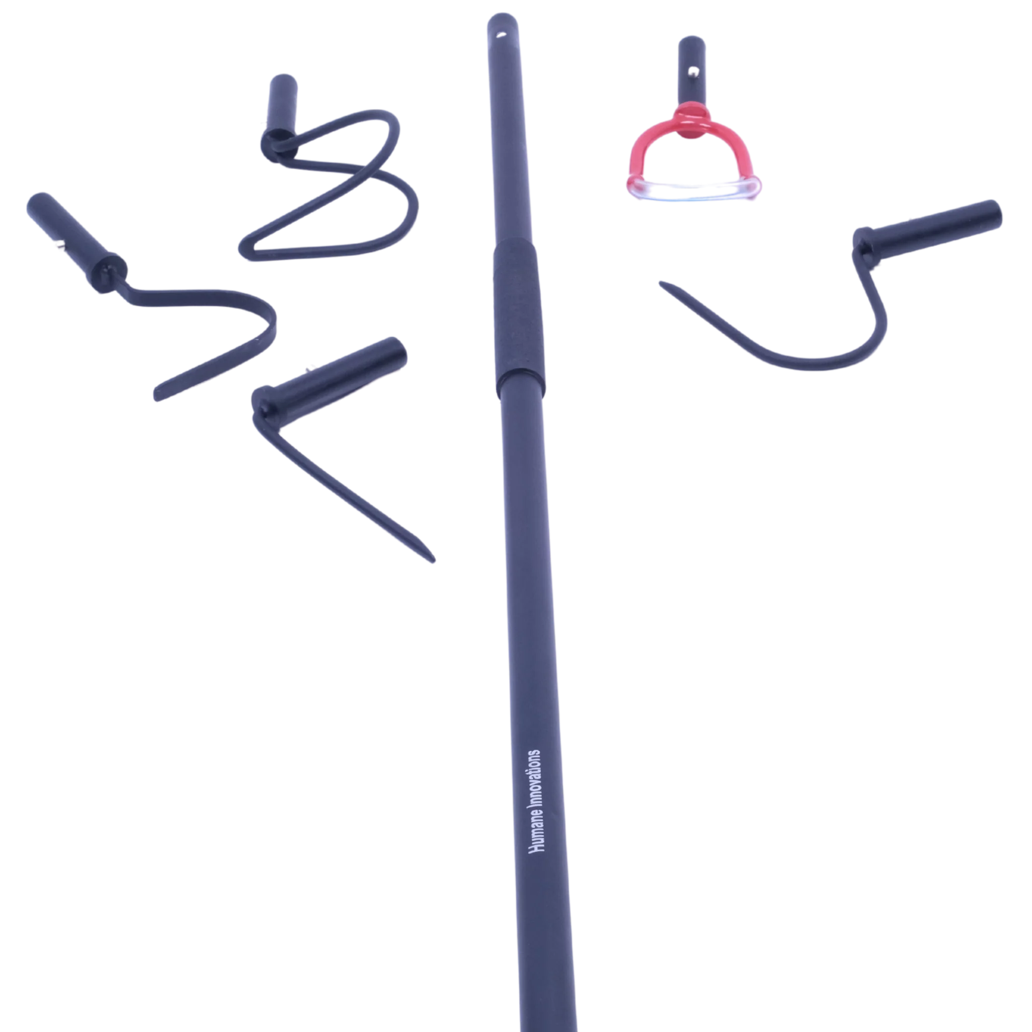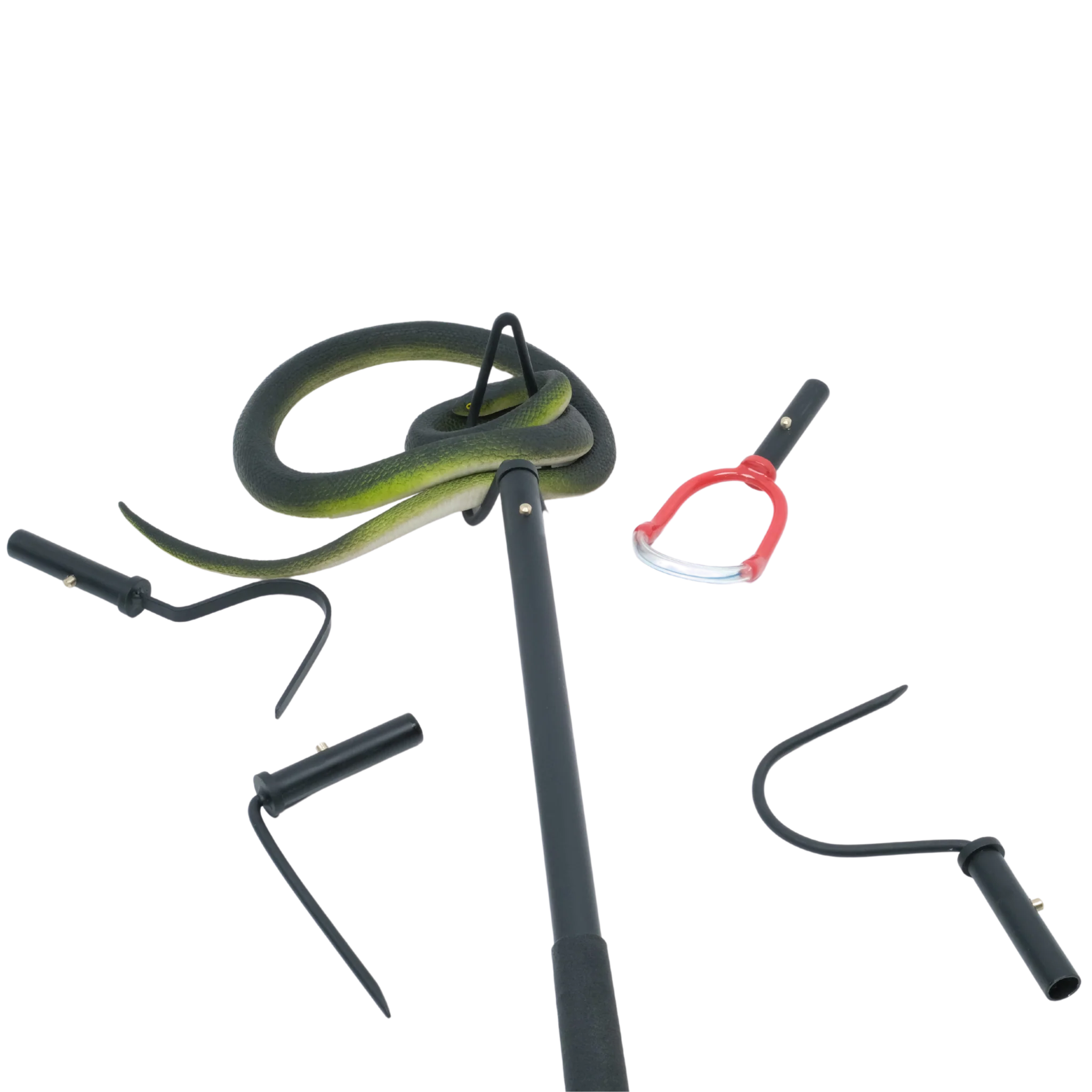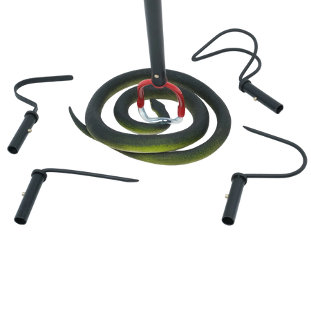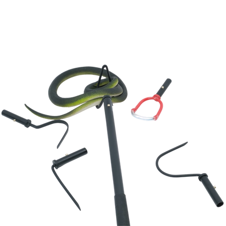 The multi-headed Medusa tool from Humane Innovations gives you a variety of options for working with snakes and reptiles. Each head is purpose built for a different snake or reptile related task. The total length of the tool is approximately 40", depending on which head you are using.