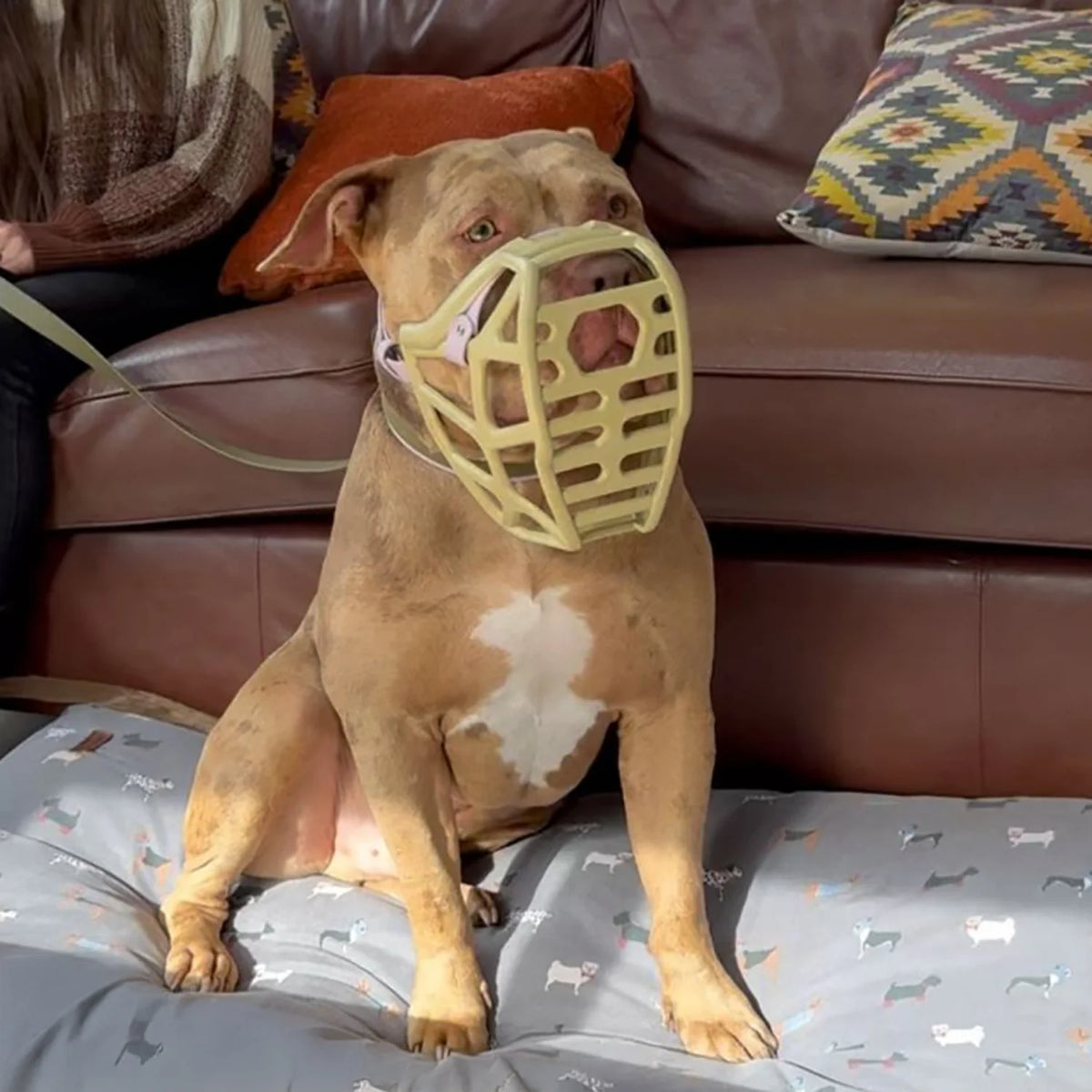 The Mitzy represents the largest option in The Muzzle Movement's Short & Wide Fit collection, specifically engineered for extra-large dogs with broad, powerful head structures. This muzzle provides the generous internal capacity needed by giant brachycephalic breeds while maintaining the secure, comfortable fit characteristics that define The Muzzle Movement's design philosophy.
