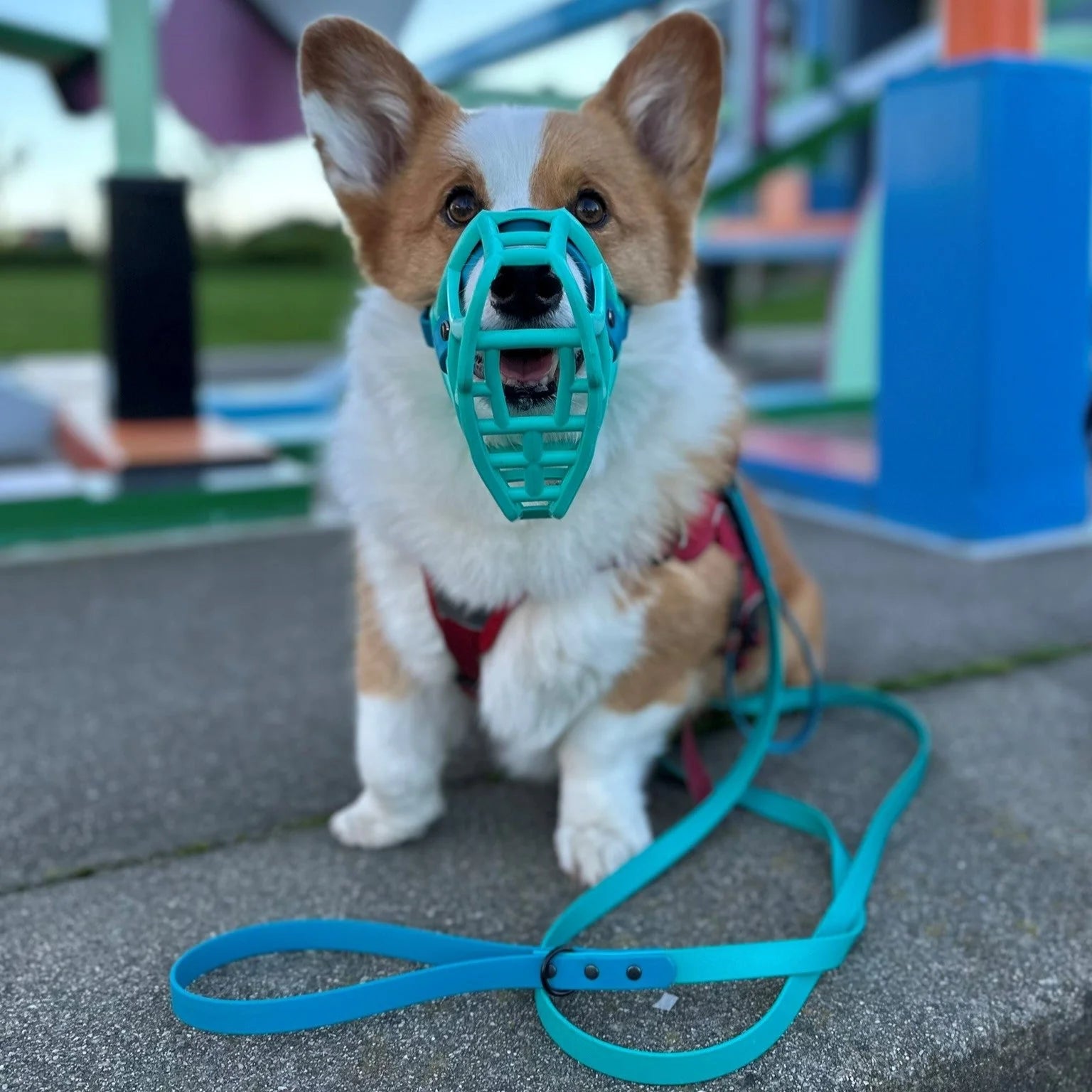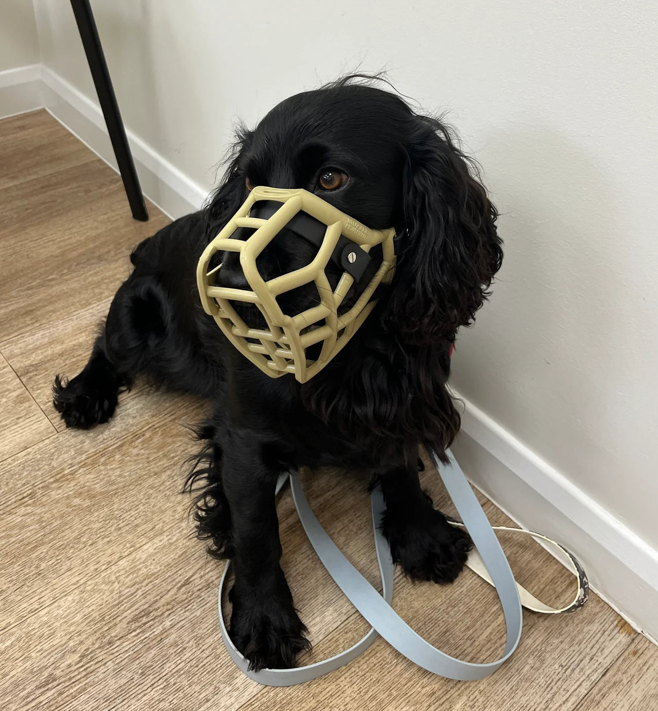 Strapping Color: Rex muzzles are currently supplied exclusively with black Biothane strapping regardless of basket color selection. This standardized configuration provides a professional, coordinated appearance and is the current offering for this size.